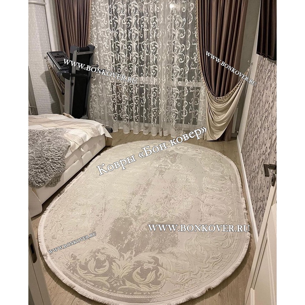 Элегантный Ковер Турция Для Гостиной Дизайн 95 Светло-Серый Овал наполняет интерьер гостиной теплом и уютом, гармонично сочетает в себе изящество и красоту. Он выполнен из экологически чистого сырья, прочный и долговечный.