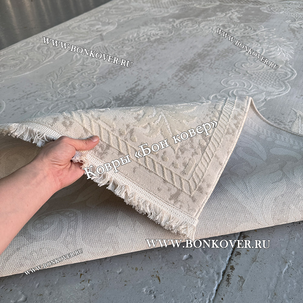 Ковер Турция Для Гостиной Дизайн 96 Белый со Светло-серым станет великолепным преображением жилого помещения, подчеркивая высокий статус владельца.